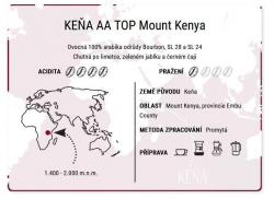 Keňa je země, AA TOP značí vysokou jakost vybraných kávových zrn, Mount Kenya označuje oblast produkce v provincii Embu County.